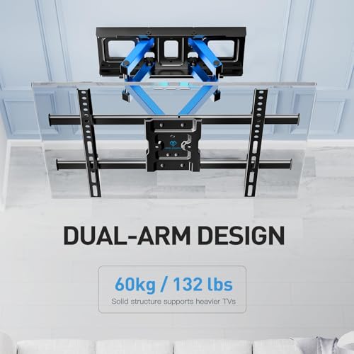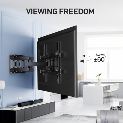 MAXIMALE RUIMTE – Onze television-muurbeugel heeft twee scharnierende armen die 76 mm van de muur kunnen worden teruggetrokken of tot 376 mm kunnen worden uitgeschoven. Dit ruimtebesparende ontwerp helpt u uw woonruimte te optimaliseren en tegelijkertijd een opgeruimde uitstraling te behouden, waardoor het geschikt is voor moderne woningen, kantoren en compacte appartementen