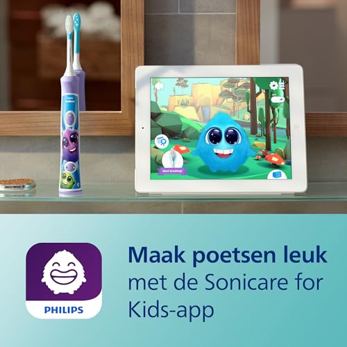 Philips Sonicare For Kids, Sonische Elektrische Tandenborstel met App, voor Kinderen vanaf 3+ Jaar, met SmarTimer en QuadPacer voor een Grondige Reiniging, Paars, Model HX6322/12