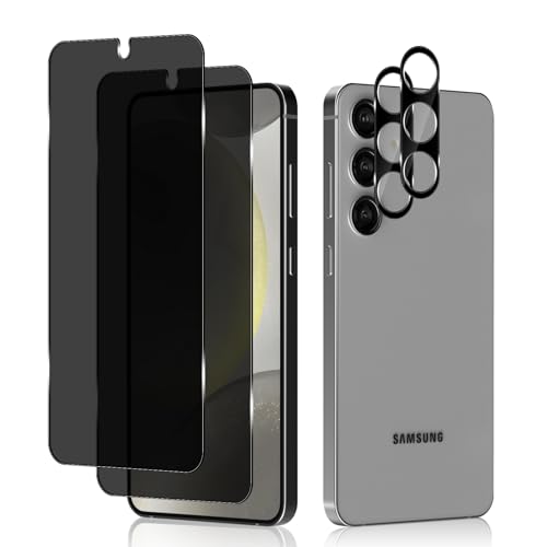 Privacy Beschermfolie + camerabescherming, compatibel met Samsung Galaxy S24 5G, pantserbescherming, glas, anti-spy folie, 2 + 2 stuks, 9H hardheid, anti-sprookfolie, inkijkwerende folie voor