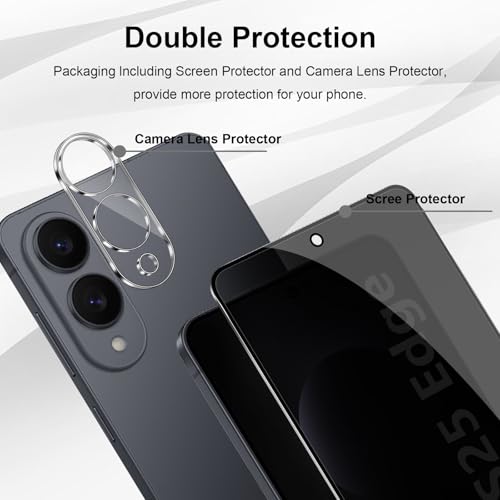 Privacy beschermfolie Samsung Galaxy S25 Edge 5G 9H gehard glas, inkijkbescherming, camera screenprotector, krasbestendig, oleofobe laag