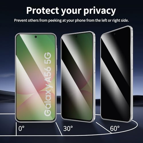 Privacy schermbeschermer Samsung Galaxy A56 5G met 3x gehard glas (9H) biedt effectieve anti-spy bescherming tegen inkijk en krassen. De ultradunne folie behoudt volledige touch-gevoeligheid en schermhelderheid, speciaal ontworpen voor optimale bescherming en privacy van jouw smartphone.