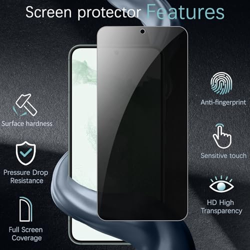 Specificaties: Privacy screenprotector voor Samsung Galaxy S22/S23, gehard glas, HD-hardheid 9H, krasbestendige displaybeschermfolie, ultra duurzaam, 2 stuks