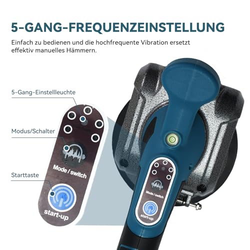 Met 5 instelbare snelheden (tot 28.000 omw/min) maakt deze tegelschudder een sneller en gelijkmatiger nivelleren mogelijk dan handmatig kloppen. De nauwkeurige frequentie-aanpassing is geschikt voor verschillende soorten tegels, van gevoelig glas tot zware natuurstenen tegels, en vermindert materiaalbreuk. Ideaal voor pros en doe-het-zelvers