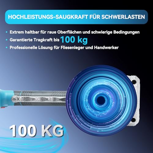 De 130 mm dikke rubberen zuignap (industriële kwaliteit) biedt een extreem hoge zuigkracht van 100 kg – veilig genoeg voor verticale wandtegels of zware vloeren. Het antislipoppervlak voorkomt wegglijden zelfs bij natte of oneffen tegeloppervlakken.