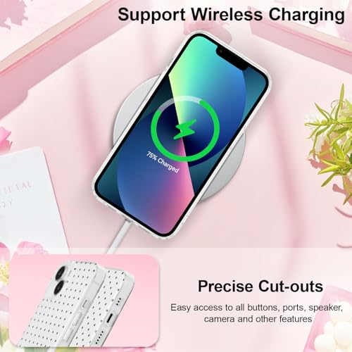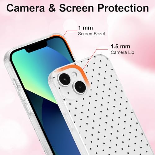 iPhone 13/14 hoesje 6,1 inch met slank, duurzaam TPU ontwerp biedt effectieve schokbestendige bescherming. Het polkadot-patroon blijft door IMD-print helder zonder te vervagen. Dit lichtgewicht telefoonhoesje beschermt tegen krassen en stoten zonder bulk toe te voegen.