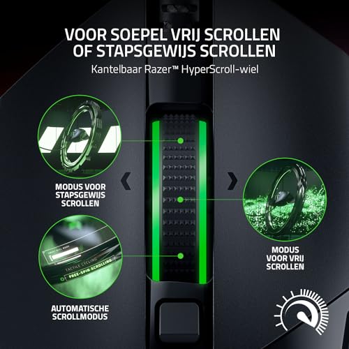 KANTELBAAR RAZER HYPERSCROLL-WIEL: Blader vliegensvlug door content material met een scrollwiel dat vrij draait totdat je het zelf stopt of schakel over op stapsgewijs scrollen voor meer precisie en voelbare suggestions – ideaal voor het bladeren door wapens of vaardigheden.