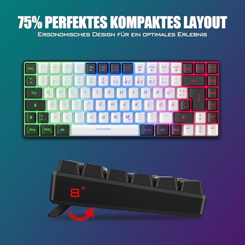 RedThunder Gaming toetsenbord en muisset, 75% draadloos gamingtoetsenbord en muisset, DE TKL lay-out, 85 toetsen, oplaadbaar, compact, ultralicht, 7200dpi-muis met honingraatconstructie, voor pc, Mac