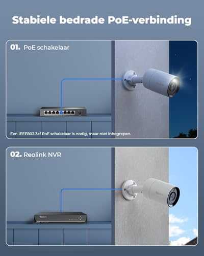 PLUG EN PLAY: Power over Ethernet techniek maakt het mogelijk dat de camera video’s uitzendt en stroom krijgt via één netwerkkabel, zodat je de camera gemakkelijk kan installeren. De gratis Reolink App/Client met eenvoudige bedieningsfunctie voorkomt gedoe bij het instellen van deze camera.