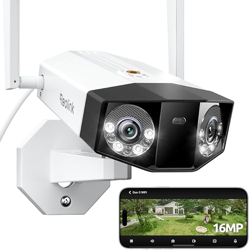 Reolink 16MP WiFi-Beveiligings Camera Buiten met Dubbele Lens, 180° Horizontaal Zicht, 2,4/5GHz Wi-Fi 6, Detectie van Personen/Voertuigen/Dieren, Bewegingsspoor, 2-wegaudio, 24/7 Opname, Duo 3 Wifi