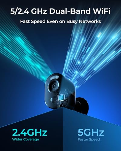 Batterij of op Zonne-Energie, Dual-Band WiFi en 100% Draad Vrij: Met ingebouwde dual-band WiFi-technologie, deze oplaadbare batterijcamera ondersteunt zowel 2,4 GHz als 5 GHz kanalen, biedt een stabielere Internet-verbinding en een flexibelere installatie