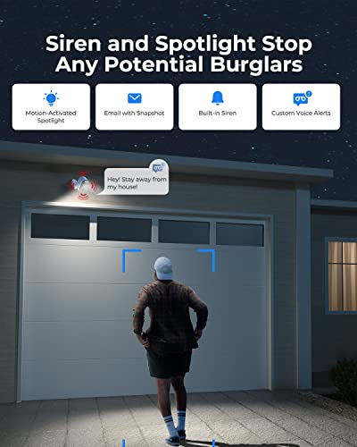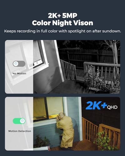 5MP Volledig kleur Nacht Visie met Spotlicht: Met een hoge resolutie van 2880x1616p, kunt u met deze slimme buitencamera scherpe en kristalheldere beelden bekijken met schitterende kleuren in live video streaming. Uitgerust met 2pcs 6500K spotlichten, kunt u tot 33ft in volle kleur zien. Geen misdaad blijft verborgen, zelfs niet ‘s nachts