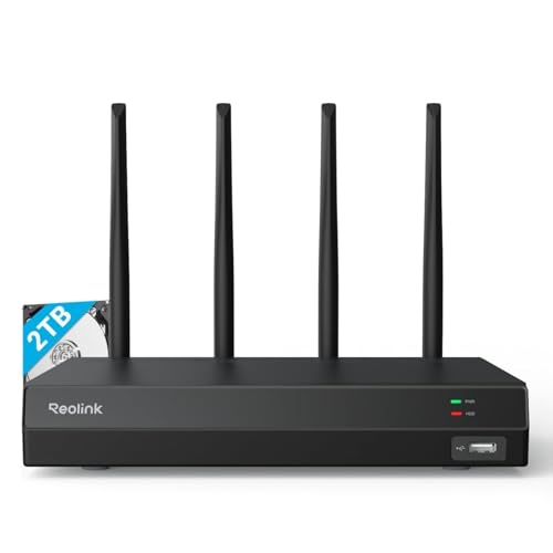 Reolink NVR Wi-Fi 6, 12 kanalen met 2TB HDD, Dual Band 2,4/5 GHz, Ondersteuning voor Wi-Fi-camera’s, Uitbreidbare Capaciteit tot 16TB, Lokale en Externe Toegang, 24/7 Opname, Geen PoE-poorten, RLN12W