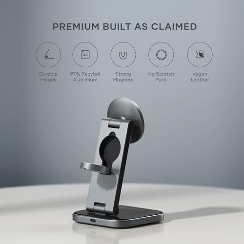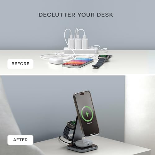 MagSafe-compatibel – Deze draadloze MagSafe-lader is speciaal ontworpen voor compatibiliteit en ondersteunt de snellaadtechnologie van Apple. Geniet van handig handsfree kijken in portret- en landschapsmodus, ondersteund door StandBy-ondersteuning. Houd uw apparaat veilig opgeladen met een betrouwbare magnetische telefoonlader.