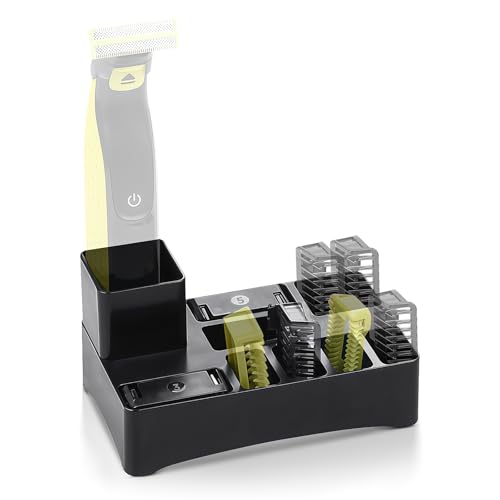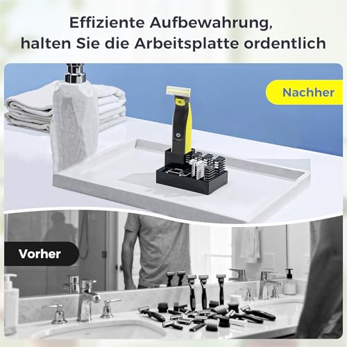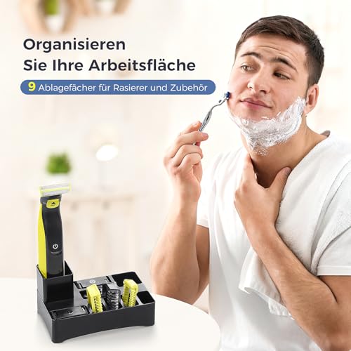 Scheerstandaard voor Philips Oneblade met 9 vakken en afvoergat, organizer voor werkblad voor scheerapparaten, koppen en accessoires (scheerapparaat en accessoires niet inbegrepen)