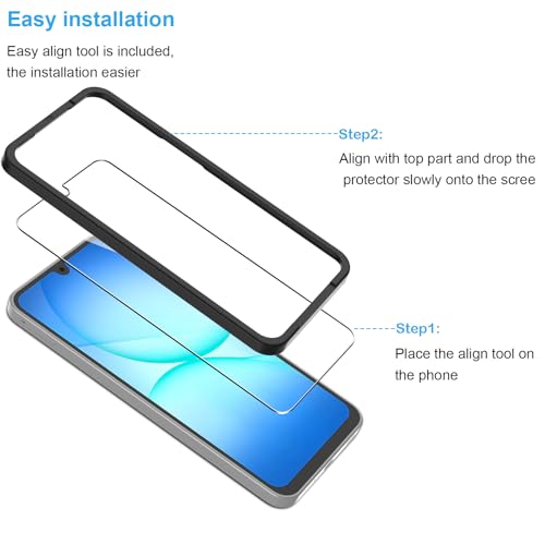 Samsung Galaxy A17 5G screenprotector van gehard glas (2 stuks) beschermt het scherm met 9H krasbestendigheid en een ultradunne dikte van 0,33 mm. Transparant en anti-vingerafdruk, behoudt het de hoge helderheid en aanraakgevoeligheid van je smartphone.