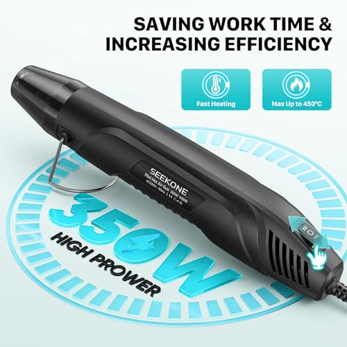 SEEKONE 350W Mini Heteluchtpistool, 260℃/450℃ Dual Temp Fast Heat Warmtepistool met Overbelastingsbeveiliging, Reflectormondstuk en Dubbel Geïsoleerde Kabel van 1,5 m voor Krimpkousen, Knutselen (B)