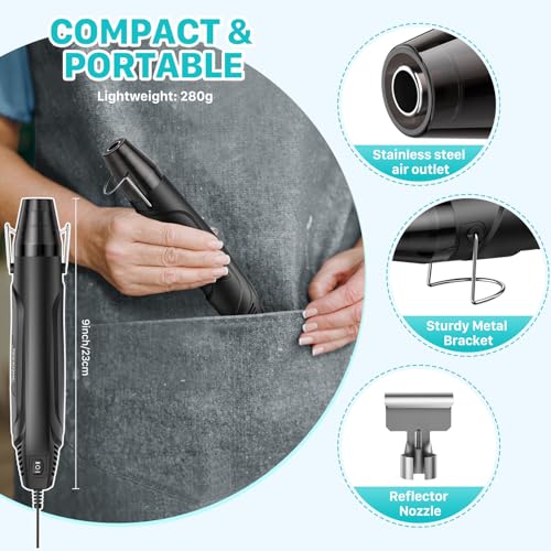 【Veelgebruikt】Dit mini warmtepistool is ideaal voor knutsel- en doe-het-zelfprojecten. Het professionele heteluchtpistool kan worden gebruikt voor krimpfolie, knutselen, krimpkousen, verf verwijderen, luchtbellen verwijderen, kaarsen maken, reliëfdruk, elektronica repareren, aquarellen drogen, ontdooien en meer