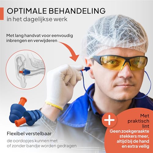 Specificaties: Senner ® WorkPro Strong | Oordopjes voor werk – Ideaal voor luide geluidsbronnen – Gehoorbescherming op het werk en thuis – met 4 extra paren, nylon koord en aluminium container