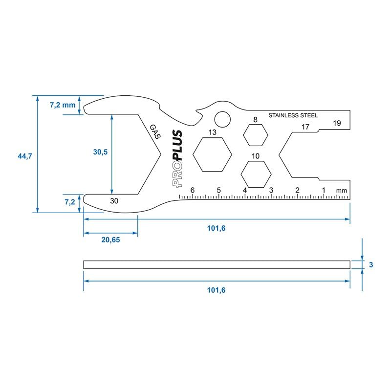 7-IN-1 MULTIFUNKTION: Naast de 30 mm hoofdsleutel beschikt het gereedschap over geïntegreerde sleutelbreedtes voor 17 & 19 mm evenals uitsparingen voor 8, 10 en 13 mm moeren. Perfect voor kleine reparaties in de werkplaats, aan de caravan of op de boot.