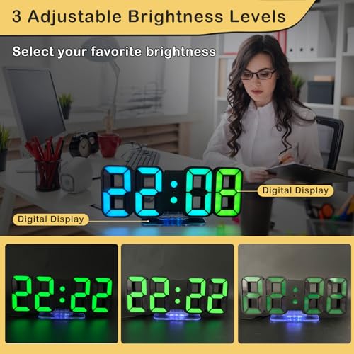 Seutgjie 3D Digitale Wandklok, LED Desktop/Wand Wekker 14 RGB Kleuren 3 Helderheid Nachtmodus Sluimerstand 12/24H Gaming Kamer Slaapkamer Decor Met Afstandsbediening voor Jongens Meisjes Tieners