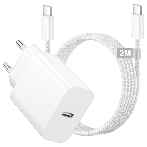 Snellader iPhone 17 16 15: USB C-lader 20 W voor een optimale laadervaring. Apple USB C-oplader met een maximaal vermogen van 20 W en een USB C-kabel van 2 m inbegrepen. iPhone-oplader: laad uw iPhone 17 16 Pro Max snel op van 0 tot 50 % in minder dan een half uur. iPhone-oplader 2 m: de slimme chip detecteert automatisch de behoeften van uw apparaat en zorgt voor een veilig oplaadproces