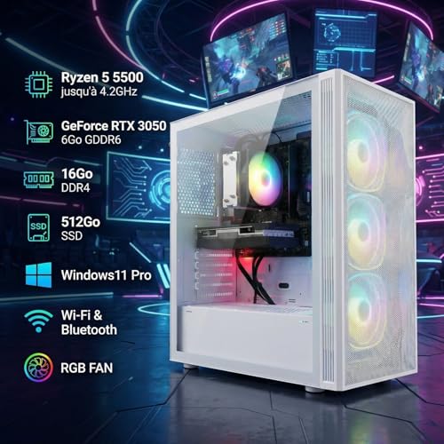 Specificaties: STGsivir Vaste gamer-pc, gaming-computer, GeForce RTX 3050 6 GB GDDR6, Ryzen 5 5500 tot 4,2 GHz, 16 GB DDR4 RAM, 512 GB SSD, WiFi 6, BT 5.0, ventilator RGB x3, Windows 11 Pro