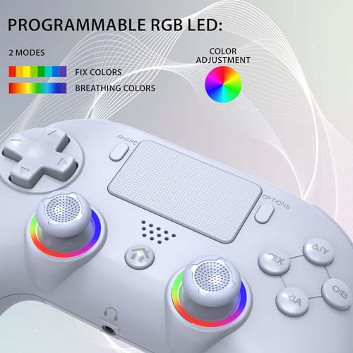 Subsonic – Draadloze controller voor PS4 / Playstation 4 – Bluetooth-controller met LED, trillingen en aansluiting voor gamingheadset – Wit