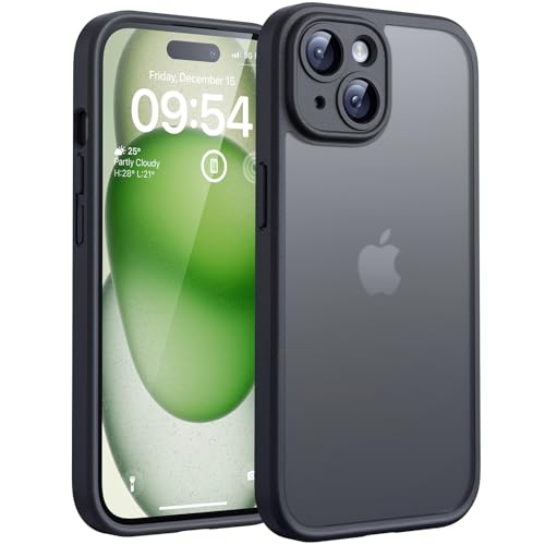 iPhone 15 hoesje zwart TPU beschermt je toestel met een slank mat ontwerp, anti-slip grip en een verhoogd frame rondom de camera voor kraspreventie. De schokbestendige vierlaagse structuur met 360° airbag dempt valimpact tot 16 voet, zonder extra bulk toe te voegen.