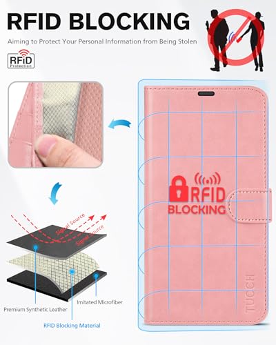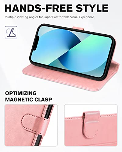 TUCCH Beschermhoes voor iPhone 13 5G, schokbestendig, TPU, beschermhoes voor iPhone 13, PU-leer, portemonnee, RFID-blokkering, standaard, kaartsleuven, beschermhoes voor iPhone 13 (6,1″), roségoud