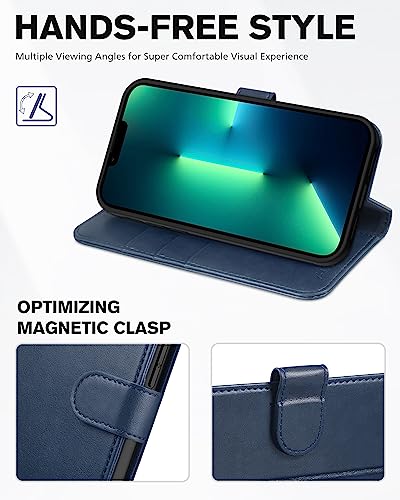 Specificaties: iPhone 13 Pro hoesje leren portemonnee met RFID bescherming, schokbestendig TPU, kaartsleuven, standaard, 6,1 inch