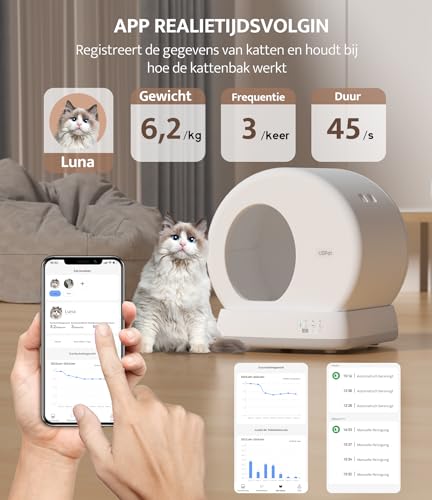 UBPet C10 Automatische Kattenbak Zelfreinigende Kattenbak Elektrische, Camerabewaking/Geurverwijderaar/Lage Instap/App-bediening Kattenbak Automatisch