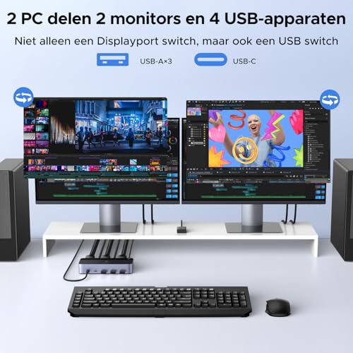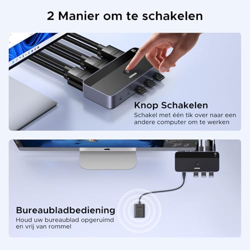 Specificaties: UGREEN Displayport KVM Switch 2 PC 2 Monitors 8K60Hz KVM Switch met 4 USB 3.0 Poorten Toetsenbord en Desktop Controller Schakelen Compatibel met Windows/Linux/MacOS etc.