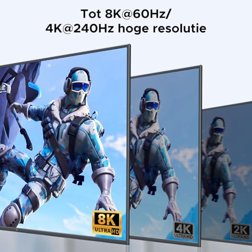 8K60Hz Extremely-HD beeldkwaliteit: DP1.4 interface ondersteunt tot 8K@60Hz resolutie en is achterwaarts compatibel met 8K30Hz, 4K, 1080P, 720P, 480P enzovoort. Voldoet aan de vereisten van professioneel ontwerp, gaming, kantoorscenario’s met meerdere schermen, stabiel signaal zonder vertraging.