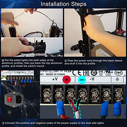 De 24V LED-lamp 7,5W dual-side lichtbalk verlicht het hele bouwbed van Ender 3 V2 Pro, S1, CR6SE en Aquila 3D-printers met een 2020-profiel. Dankzij de dubbele LED-strips en mechanische schakelaar is het printgebied gelijkmatig en zonder schaduwen verlicht.