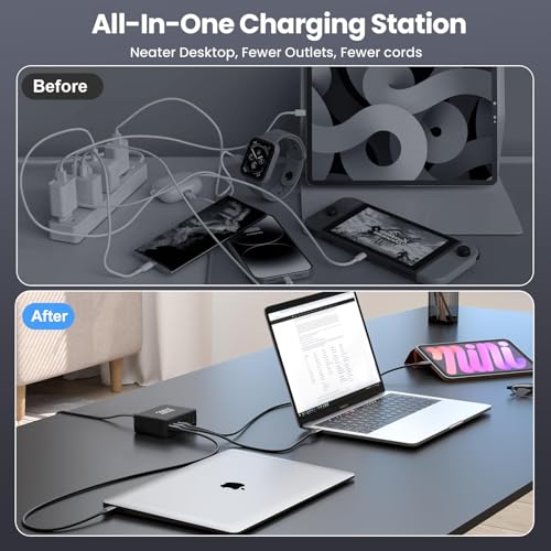 Draagbaar en compact: dit USB C-laadstation is zeer klein en licht, integreert good de C-poort en de USB-poort, waardoor het good is voor thuis, op kantoor en op reis. Het ontwerp van een 5 voet AC-oplaadkabel maakt het mogelijk om vrij te laden zonder je zorgen te hoeven maken over afstandsbeperkingen.