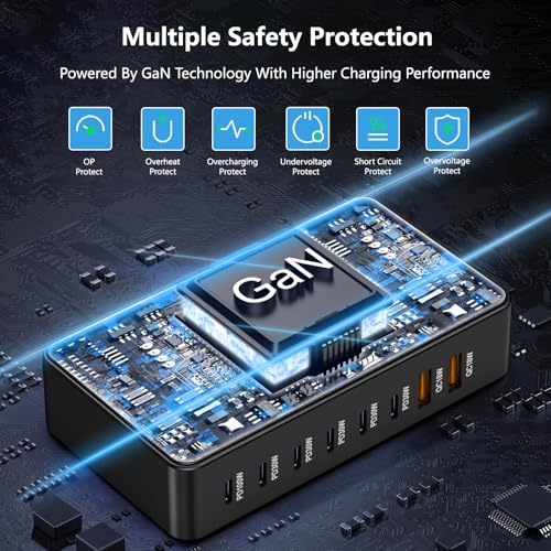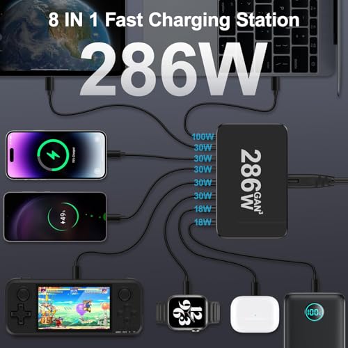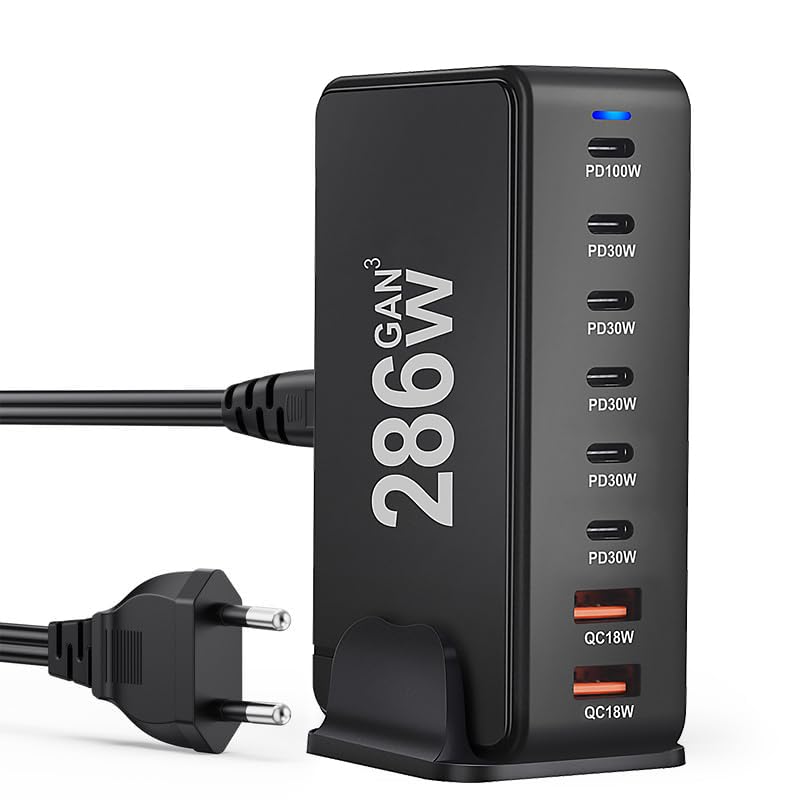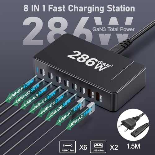 Specificaties: USB C-Oplader: 286 W 8-Poorts USB-Voedingsadapter, Meervoudige Snellader Met 6 USB-C en 2 USB-A, PD 3.0 Power Voeding Voor MacBook, Laptop, iPhone, iPad, Samsung