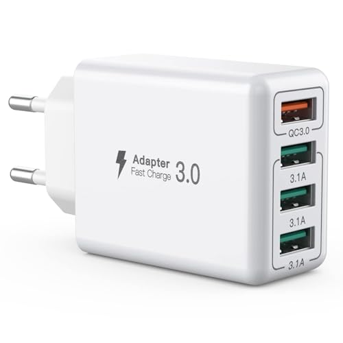 【4-poorts USB-oplader】 4 USB-poorten snellader (1 x QC 3.0 + 3 x USB Shared 5 V/3,1 A MAX) met een maximaal vermogen van 33 W voor het gelijktijdig opladen van maximaal 4 apparaten bij volle snelheid. De ingebouwde intelligente chip detecteert automatisch alle aangesloten apparaten en zorgt voor een optimaal laadvermogen. Dit bespaart je kostbare tijd.