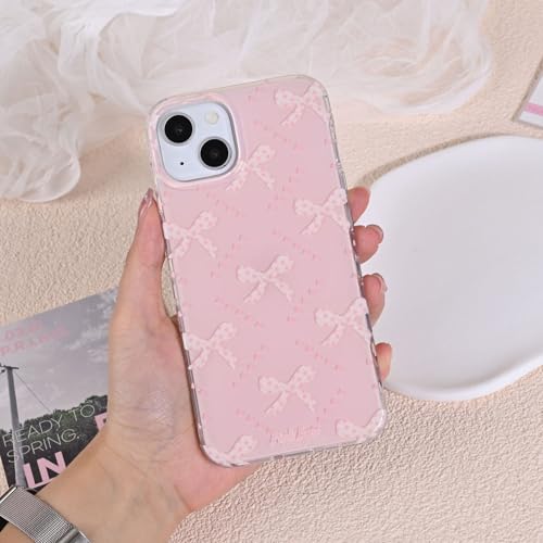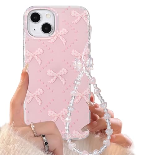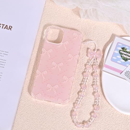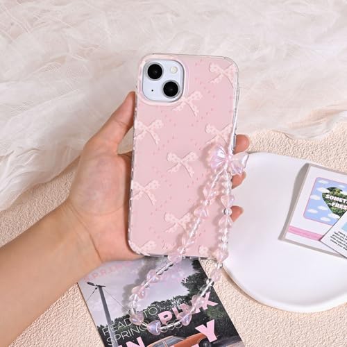 voor iPhone 13/iPhone 14 hoesje met schattige roze strikknoop diamant patroon esthetische meisjesachtige cover, zachte TPU bumper beschermende telefoonhoesjes voor vrouwen meisjes +