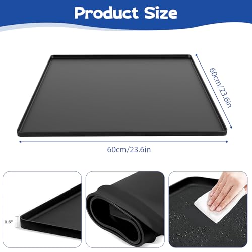 Wasmachinebak, 60 x 60 cm waterdichte siliconen wasbak voor vloerbescherming, lekkagebeveiligingsbak voor wasmachines, drogers, vaatwassers, koelkasten, airconditioners