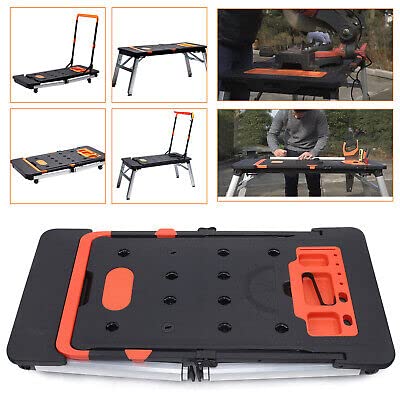 Werktafel, werkbank, rolplank, werkplatform, in hoogte verstelbaar, handwagen, inklapbaar, in hoogte verstelbaar, transportwagen, zaagbok, 1140 x 590 mm, draagbaar, multifunctioneel, inklapbaar steiger, Dolly 7-in-1