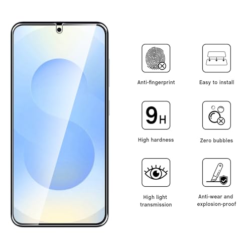 WFTE Deze screenprotector, speciaal ontworpen om te passen Samsung Galaxy S25 5G; 9H hoge kwaliteit gehard glas, drie keer sterker dan gewone PET-film. Het is sterk genoeg om je telefoon te beschermen tegen krassen, knijpen en scheuren; Hoge transparante en ultra-heldere glazen schermbeschermer voor Samsung Galaxy S25 5G zorgt voor een snelle reactie en 102% nauwkeurige aanraking op het scherm; Stofvrij, vingerafdrukvrij, luchtbelvrij one-push tremendous eenvoudige installatie