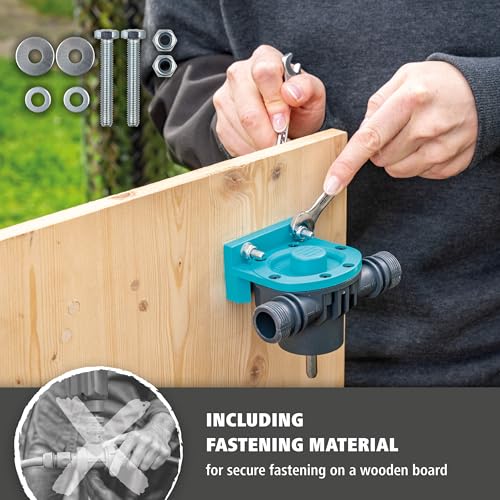 twee schroefaansluitingen voor het verbinden met slangen van Ø 13 mm (½”) of Ø 19 mm (¾”) compatibel met kraanverbindingen Ø 26,5 mm (G ¾”) en slangverbindingen Ø 13 mm (½”) of Ø 19 mm (¾”)