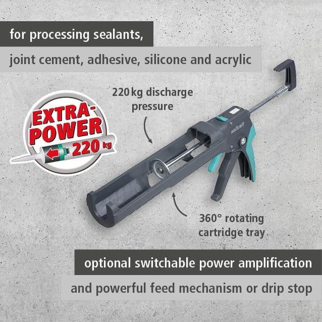 Specificaties: wolfcraft Kitspuit MG 550 – De krachtige en veelzijdige pers – voor de verwerking van afdichtingsmiddelen, voegcement, lijm, silicone en acryl uit patronen van 310 ml – Made in Europe – 4358000