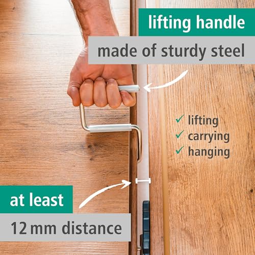 Robuuste hefbeugel van staal vergemakkelijkt het plaatsen en veilig verranden van deuren met een materiaaldikte van 2 tot 5 cm.