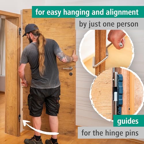 wolfcraft Montageset deurblad, 3-delig. I 3674000 I Voor het eenvoudig afhangen, afstellen en dragen van deuren door een persoon