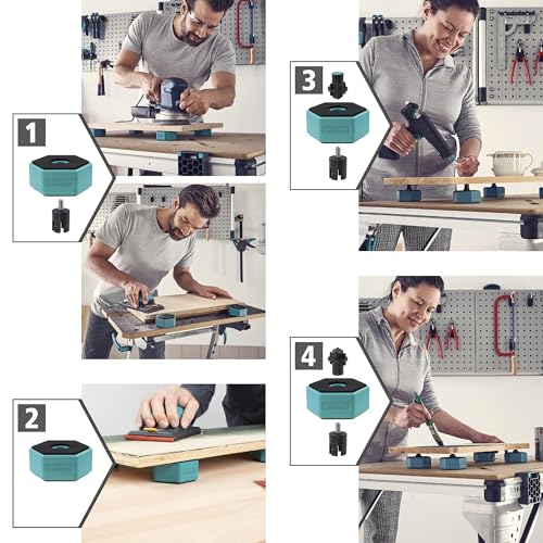 4 universeel inzetbare werkstuksteunen met antislip-schuimrubber aan de boven- en onderkant voor een stevige grip op werkstukken