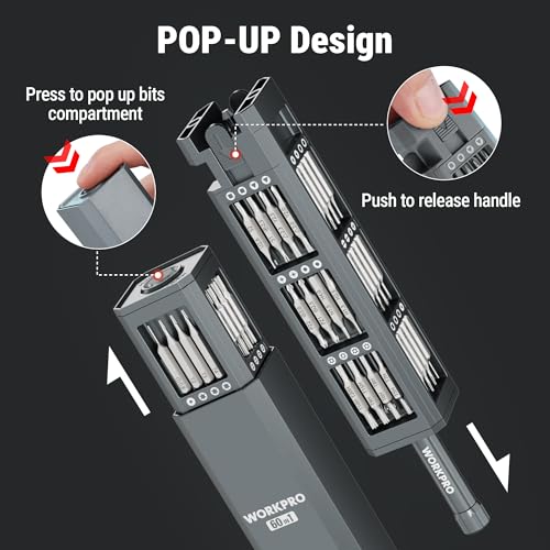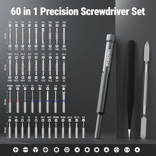 WORKPRO 60-in-1 precisie-schroevendraaierset, magnetische kleine schroevendraaierset met koffer, mini-schroevendraaiersets met verlengstang voor elektronica, bril, horloge, telefoon, model, laptop, pc