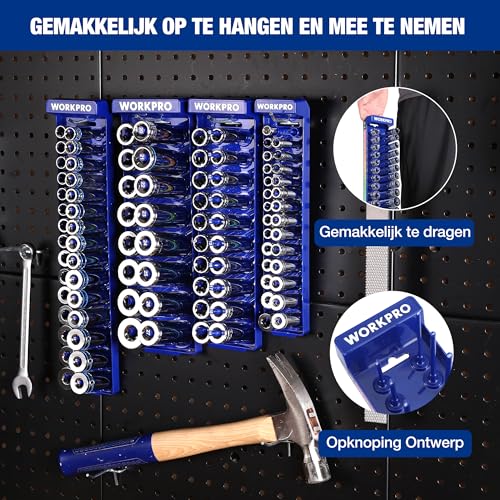 WORKPRO Doppenhouder, doppenopbergset, 4-delige houderset voor 1/4“, 3/8” en 1/2” aandrijving, metrische doppenopbergers