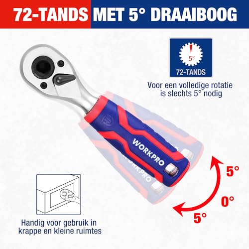 Specificaties: WORKPRO Gereedschapskist, 42 steeksleutelinzetstukken, 1/4 inch, ratelset met schroevendraaier en bits, ratelsleutel met 72 tanden, voor doe-het-zelvers, autoreparatie, dagelijks onderhoud