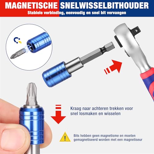 Magnetische bithouder met snelwisselfunctie: het snelspansysteem maakt eenvoudig wisselen van bits mogelijk. Trek eenvoudig aan de hals voor een snelle en veilige vervanging